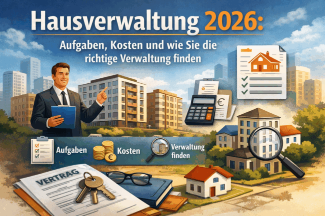 Hausverwaltung 2026: Aufgaben, Kosten und wie Sie die richtige Verwaltung finden Die Verwaltung von Immobilien wird zunehmend komplexer. Steigende Anforderungen, gesetzliche Änderungen und wirtschaftliche Faktoren machen eine professionelle Hausverwaltung im Jahr 2026 unverzichtbar. Eigentümer, die auf eine strukturierte und strategische Verwaltung setzen, profitieren nicht nur von Entlastung, sondern steigern langfristig auch den Wert ihrer Immobilie.…